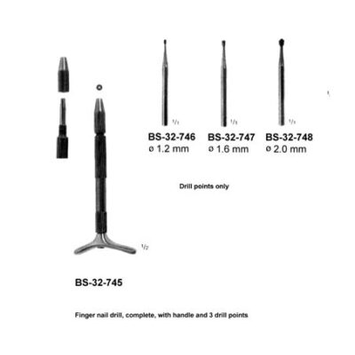 FINGER NAIL DRILL, COMPLETE, WITH HANDLE AND 3 DRILL POINTS – DIA 1.2 MM – 2.0 MM